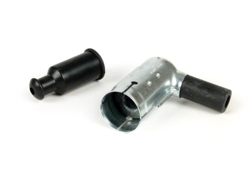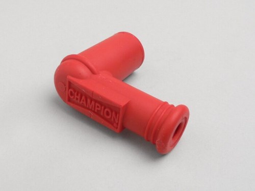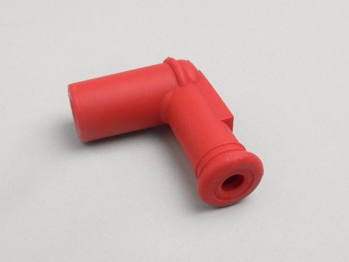 Connettore per candele in gomma leggera di colore rosso. Look fresco con motore esposto. Adatto a candele con filettatura M4.AI-translation