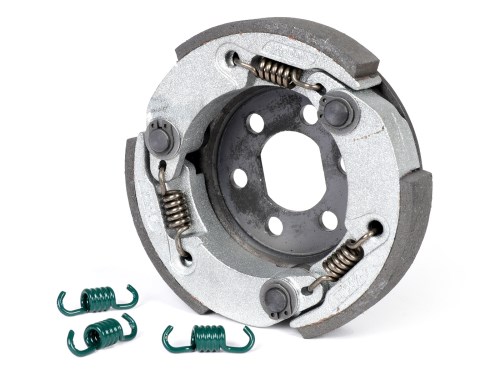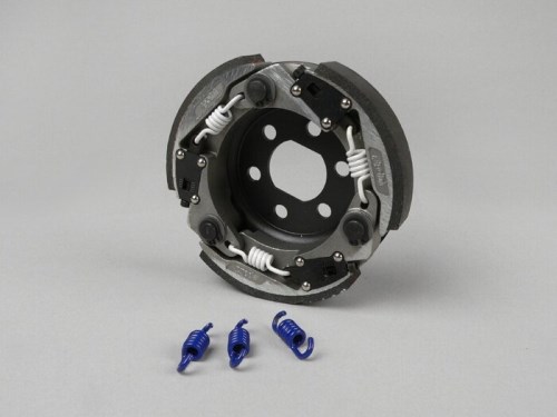La frizione POLINI G3 Speed Clutch è una frizione da corsa solidamente costruita con varie opzioni di regolazione. Oltre alle note opzioni di regolazione tramite molle di diversa forza, la frizione di alta qualità offre anche una caratteristica aggiuntiva. I pesi avvitati sulle ganasce della frizione possono essere ruotati e quindi influenzano, oltre alla velocità della frizione, se la frizione deve stringere di più o di meno. Inoltre, le molle possono essere appese in diversi fermi, così che ci sono un totale di sedici possibilità di accordatura. AI-translation